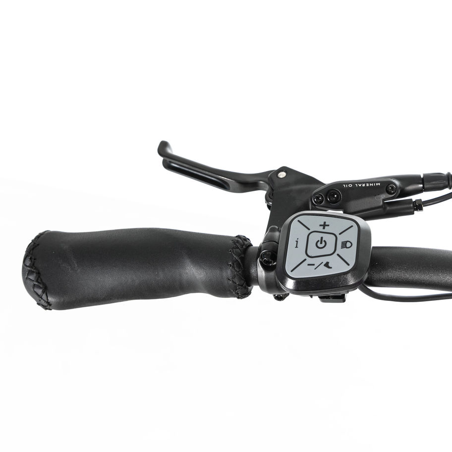 TEKTRO 180 mm hydraulic disc brakes with power-cutoff function ensure responsive and safe braking.